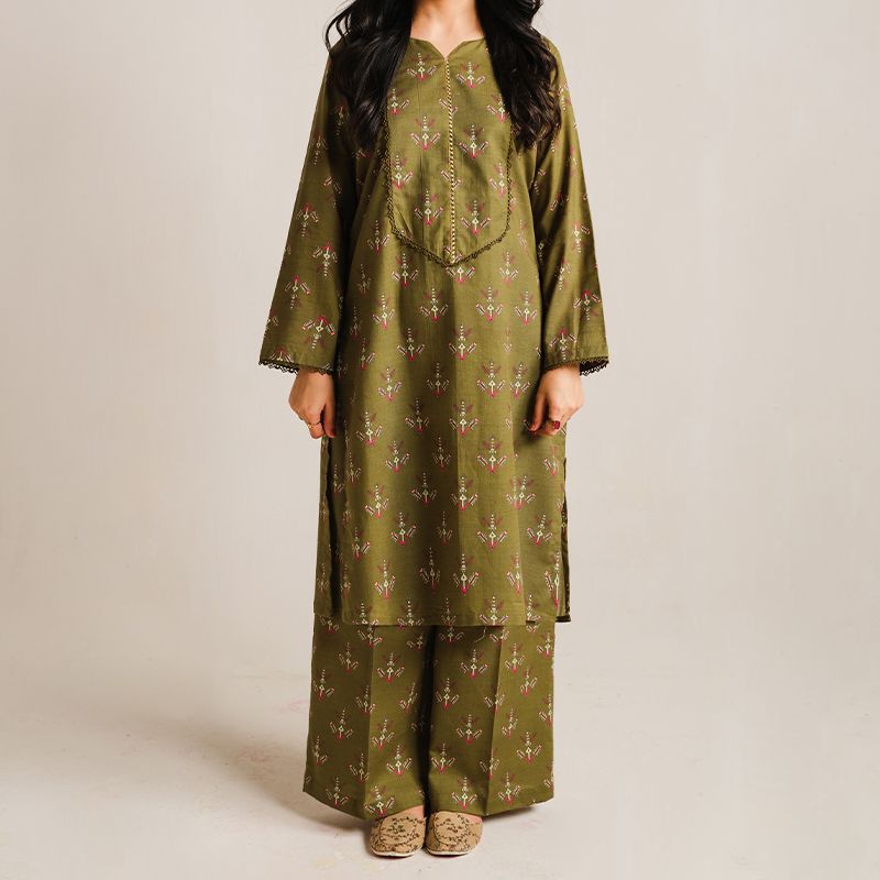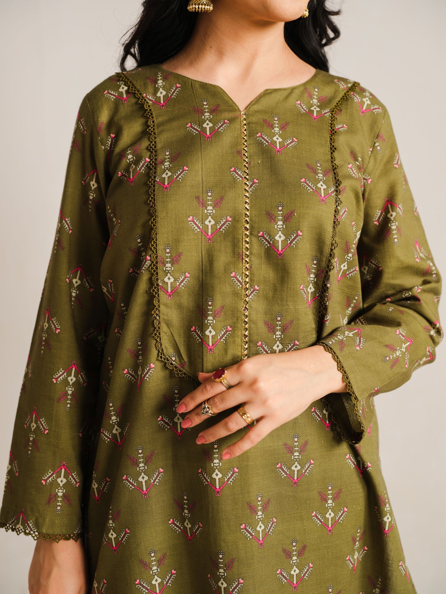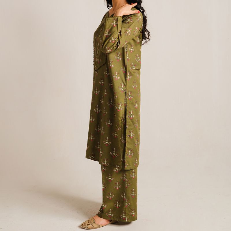 2 Piece Digital Print Kurti Salwar Set - Pure Cotton Collection Stylish Light Weight Cotton Fabric Suit Top Bottom Salwar Kameez Printed Suit For Casual Outdoor Dress - Dark Green