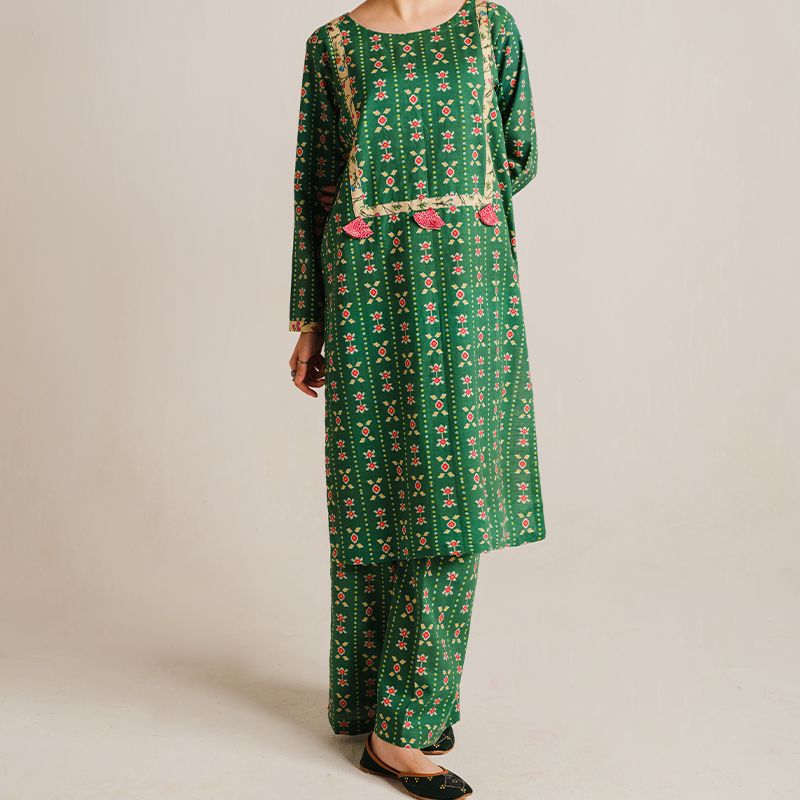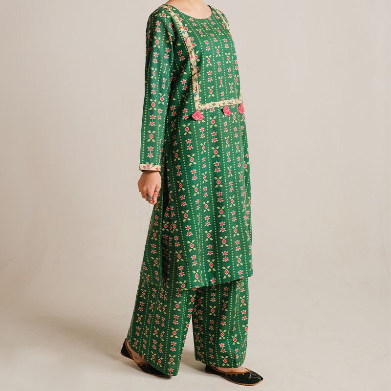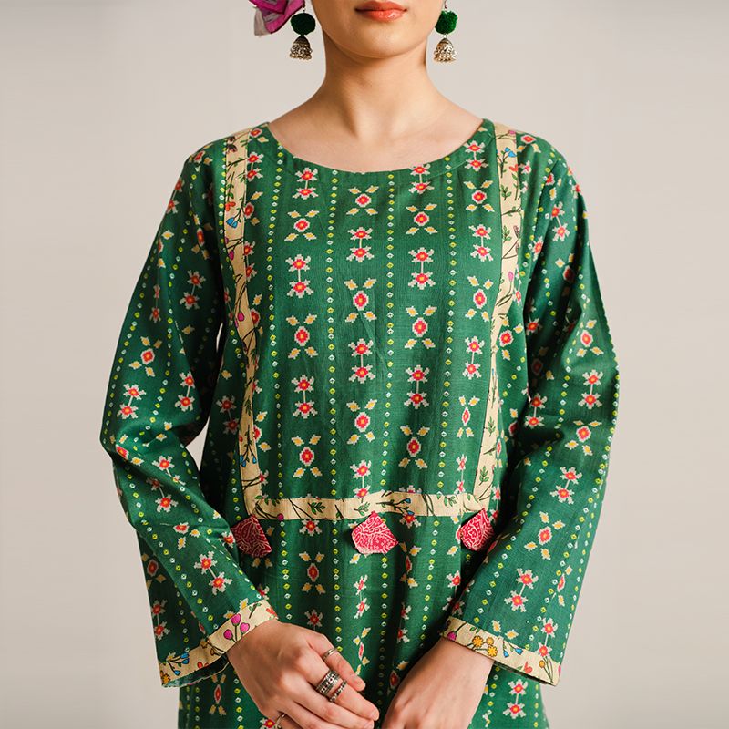 2 Piece Digital Print Kurti Salwar Set - Pure Cotton Collection Stylish Light Weight Cotton Fabric Suit Top Bottom Salwar Kameez Indian Pakistani Printed Suit For Casual Outdoor Dress - Dark Green - Shop N Save