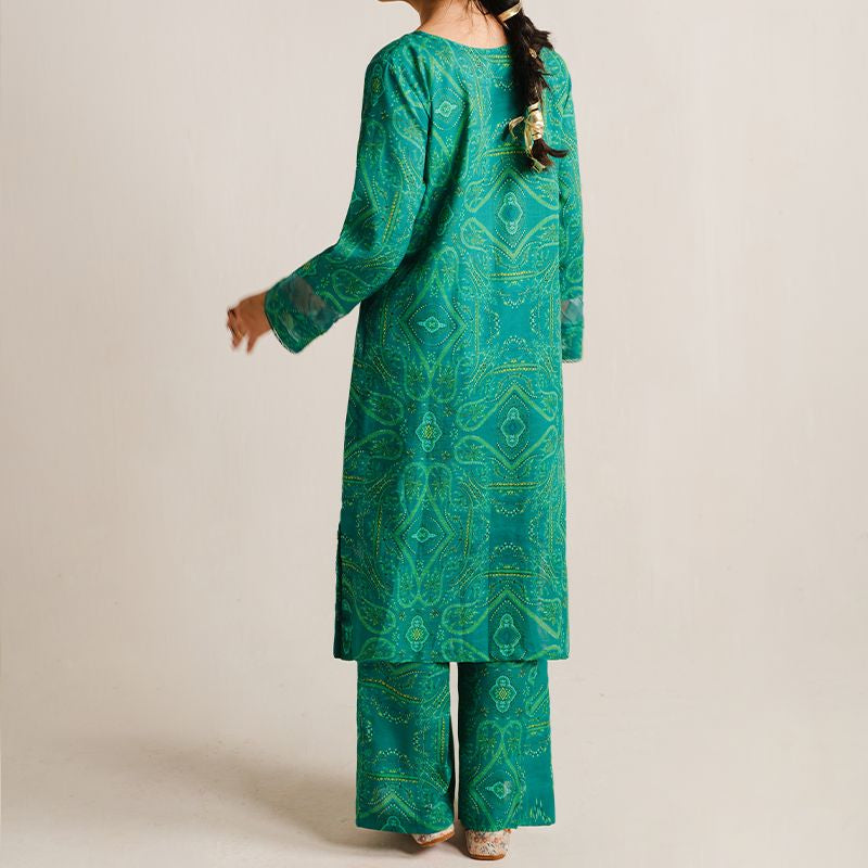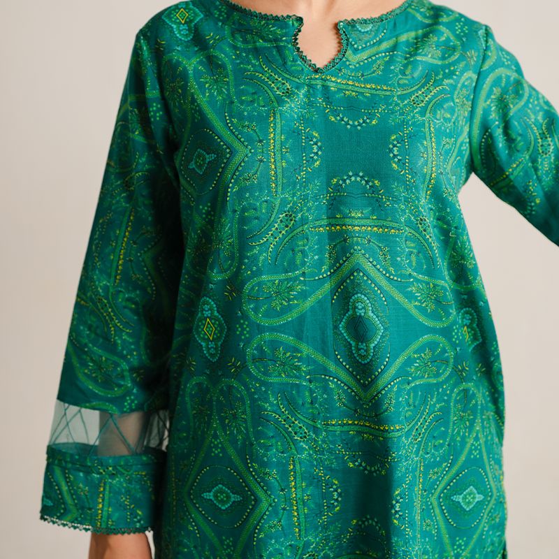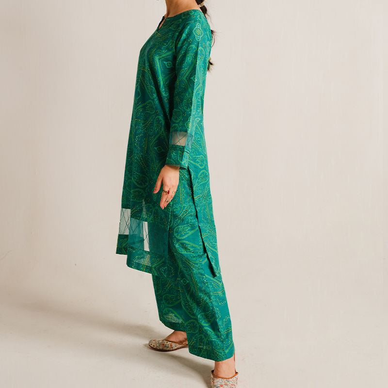 2 Piece Digital Print Kurti Salwar Set - Pure Cotton Collection Stylish Light Weight Cotton Fabric Suit Top Bottom Salwar Kameez Printed Suit For Casual Outdoor Dress - Dark Green