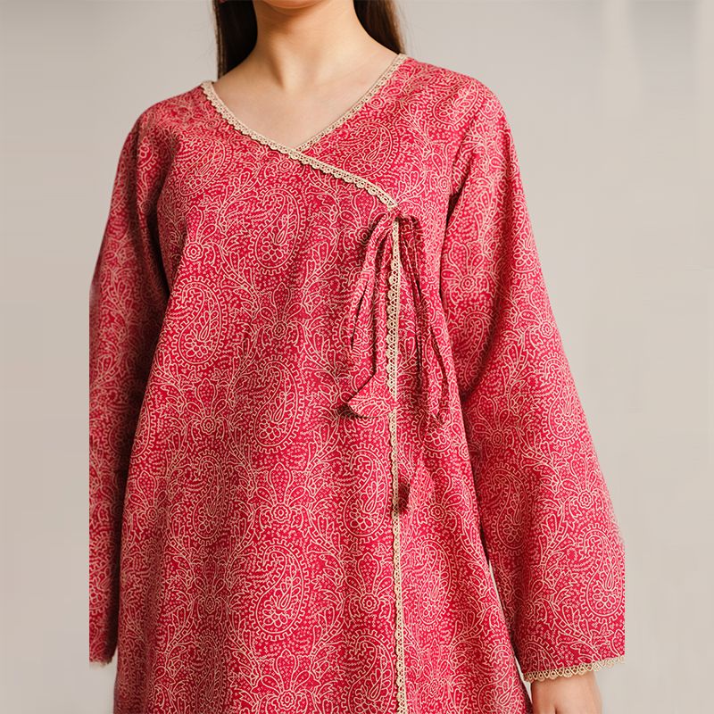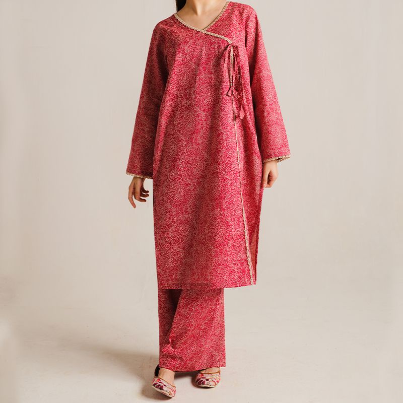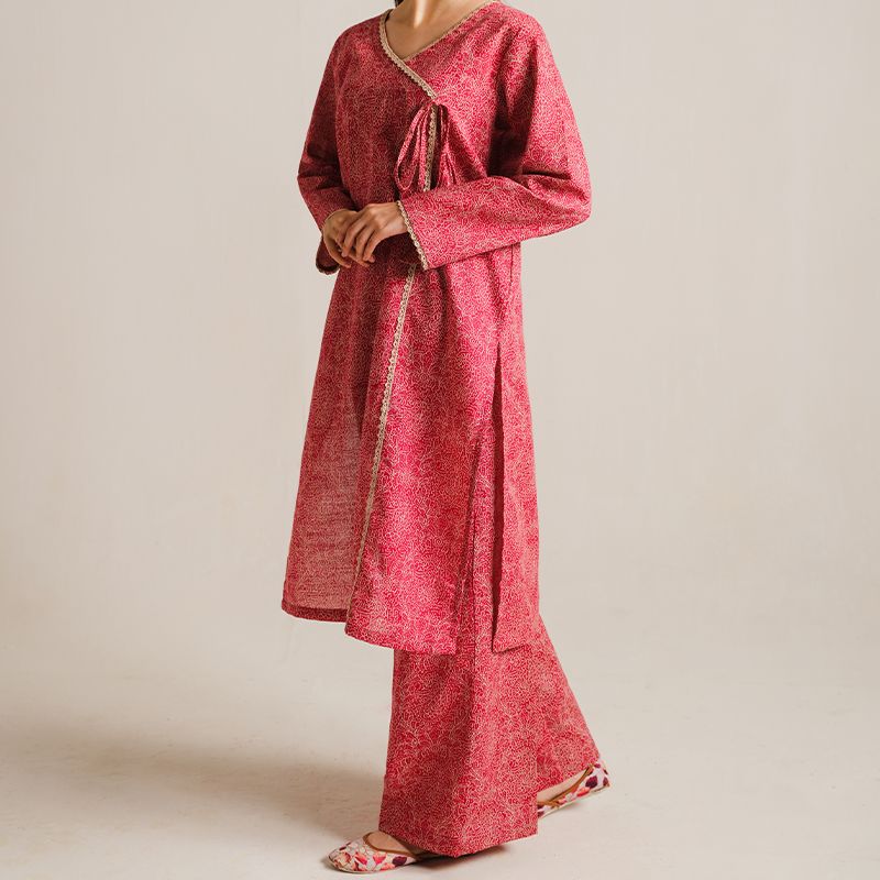 2 Piece Digital Print Kurti Salwar Set - Pure Cotton Collection Stylish Light Weight Cotton Fabric Suit Top Bottom Salwar Kameez Printed Suit For Casual Outdoor Dress - Dark Pink