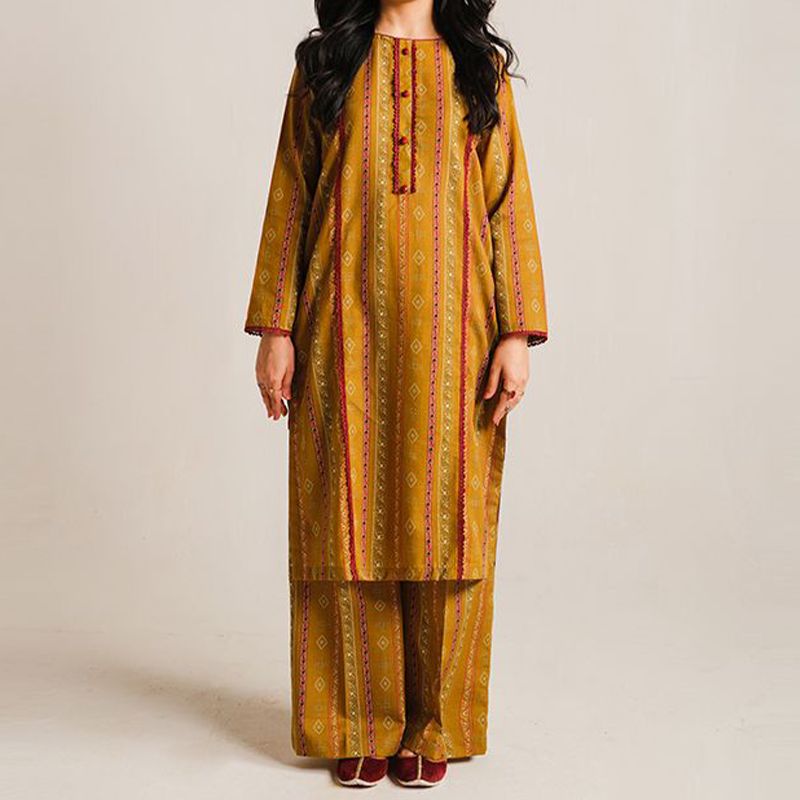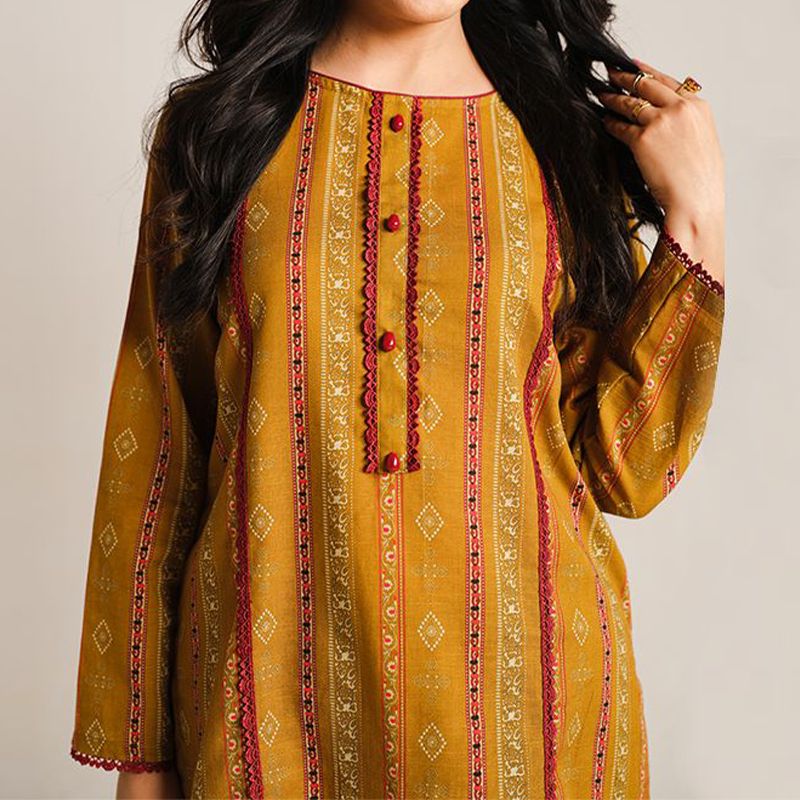2 Piece Digital Print Kurti Salwar Set - Pure Cotton Collection Stylish Light Weight Cotton Fabric Suit Top Bottom Salwar Kameez Printed Suit For Casual Outdoor Dress - Golden