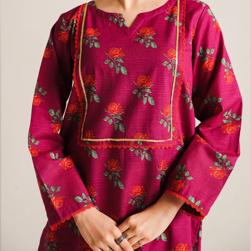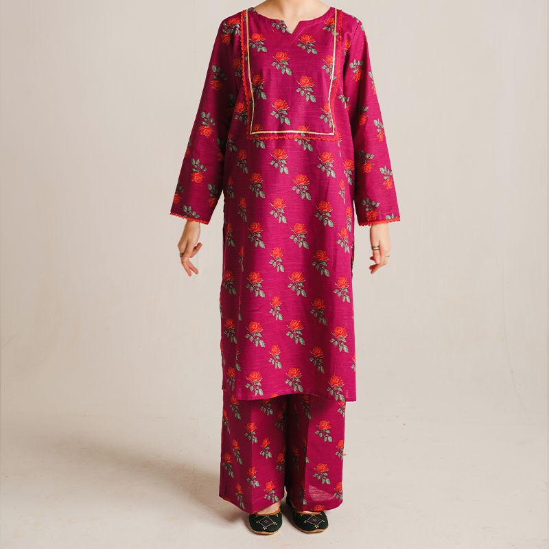 2 Piece Digital Print Kurti Salwar Set - Pure Cotton Collection Stylish Light Weight Cotton Fabric Suit Top Bottom Salwar Kameez Printed Suit For Casual Outdoor Dress - Purple