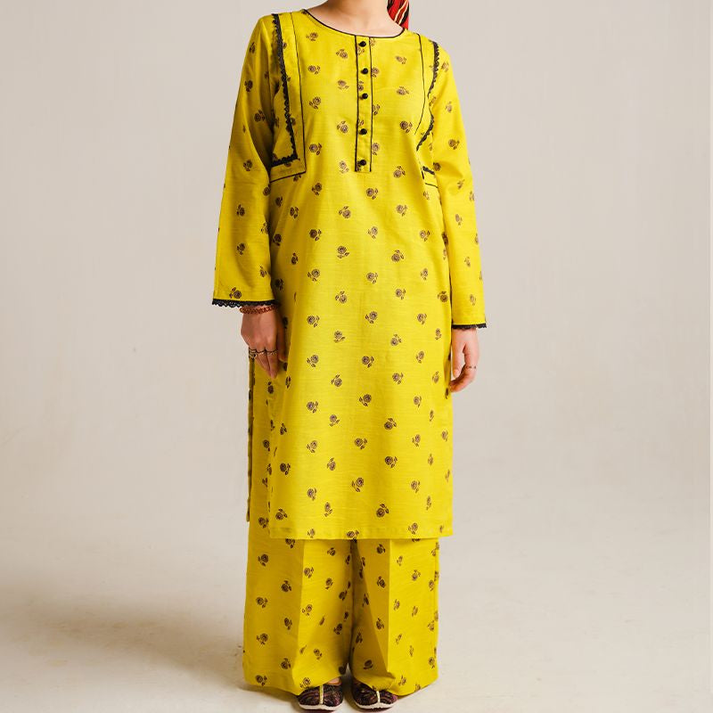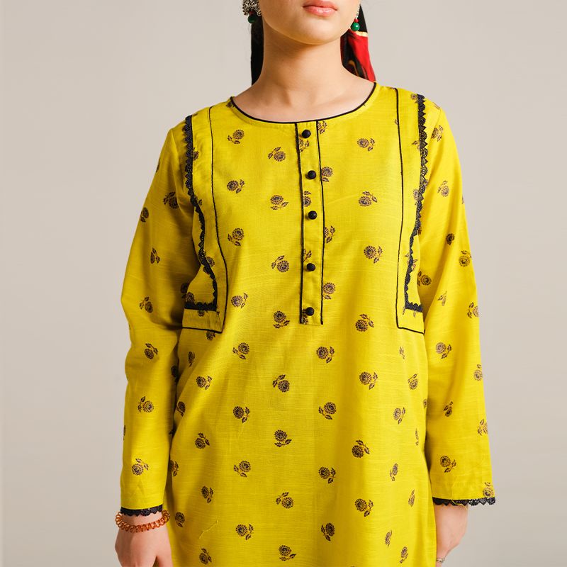 2 Piece Digital Print Kurti Salwar Set - Pure Cotton Collection Stylish Light Weight Cotton Fabric Suit Top Bottom Salwar Kameez Printed Suit For Casual Outdoor Dress - Yellow