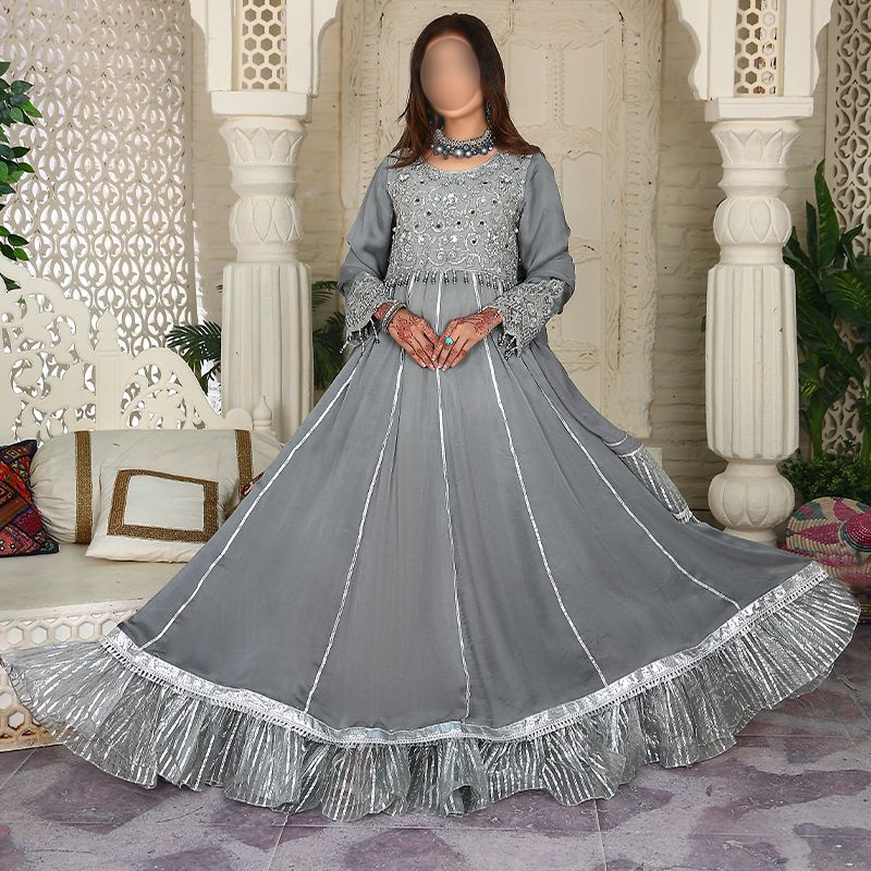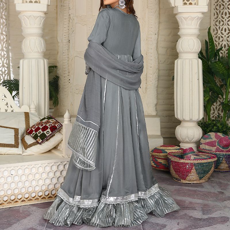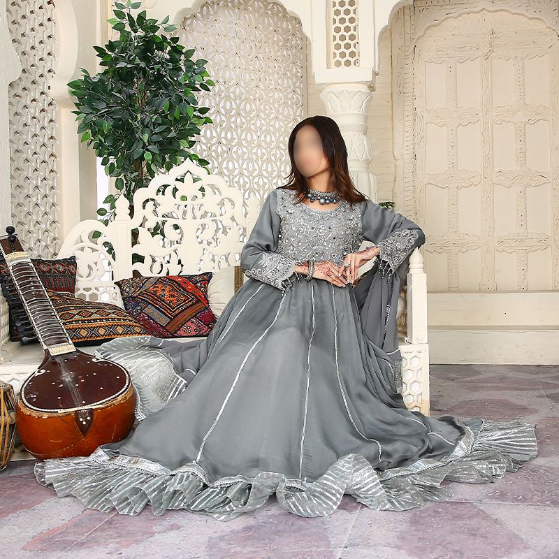 3 Piece Fancy Embroidery Dress - Stylish Light Weight Chiffon Fabric Suit Fancy Embroidered Dress For Events Party Outdoor Dress - Gray