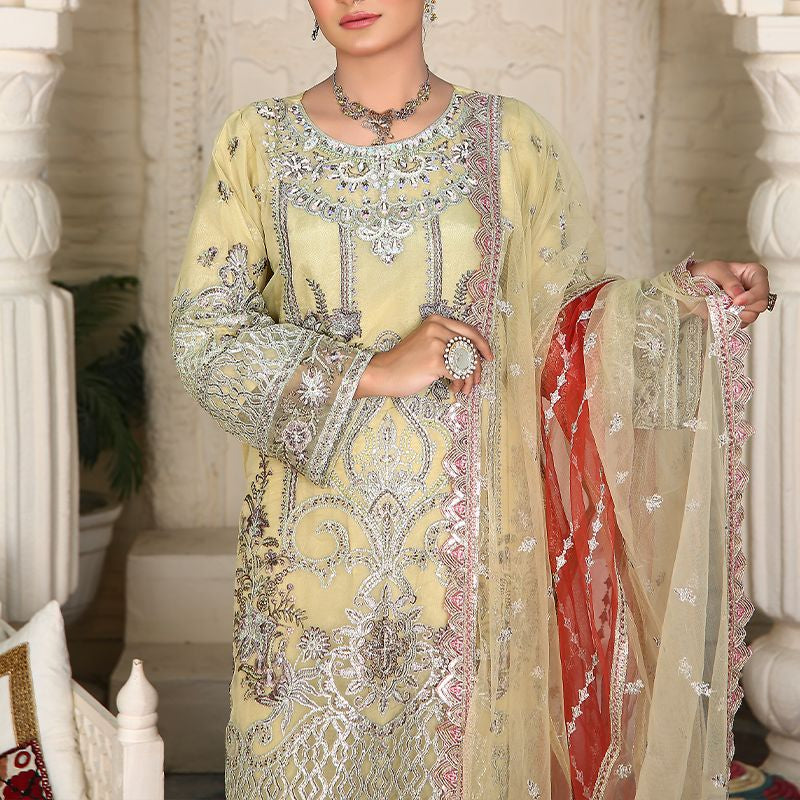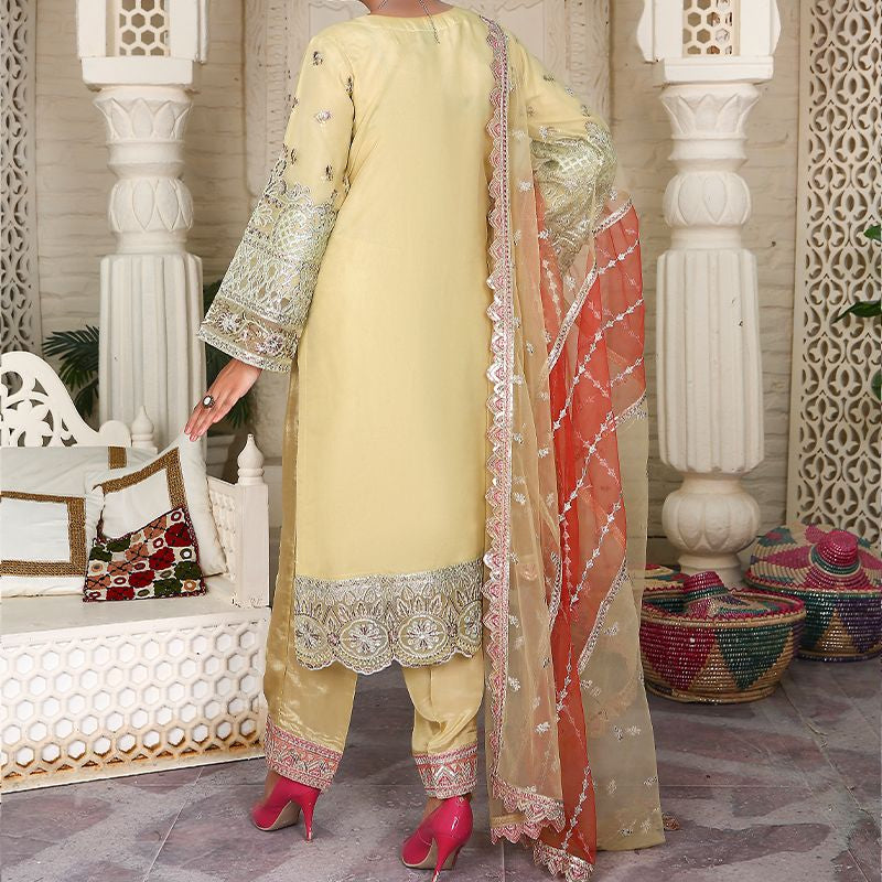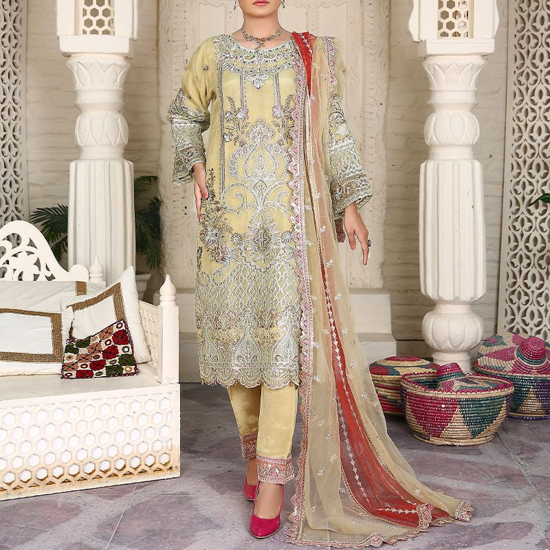 3 Piece Fancy Embroidery Dress - Stylish Light Weight Chiffon Organza Fabric Suit Fancy Embroidered Dress For Events Party Outdoor Dress - Green - Yellow / Small is backordered and will ship as soon as it is back in stock.