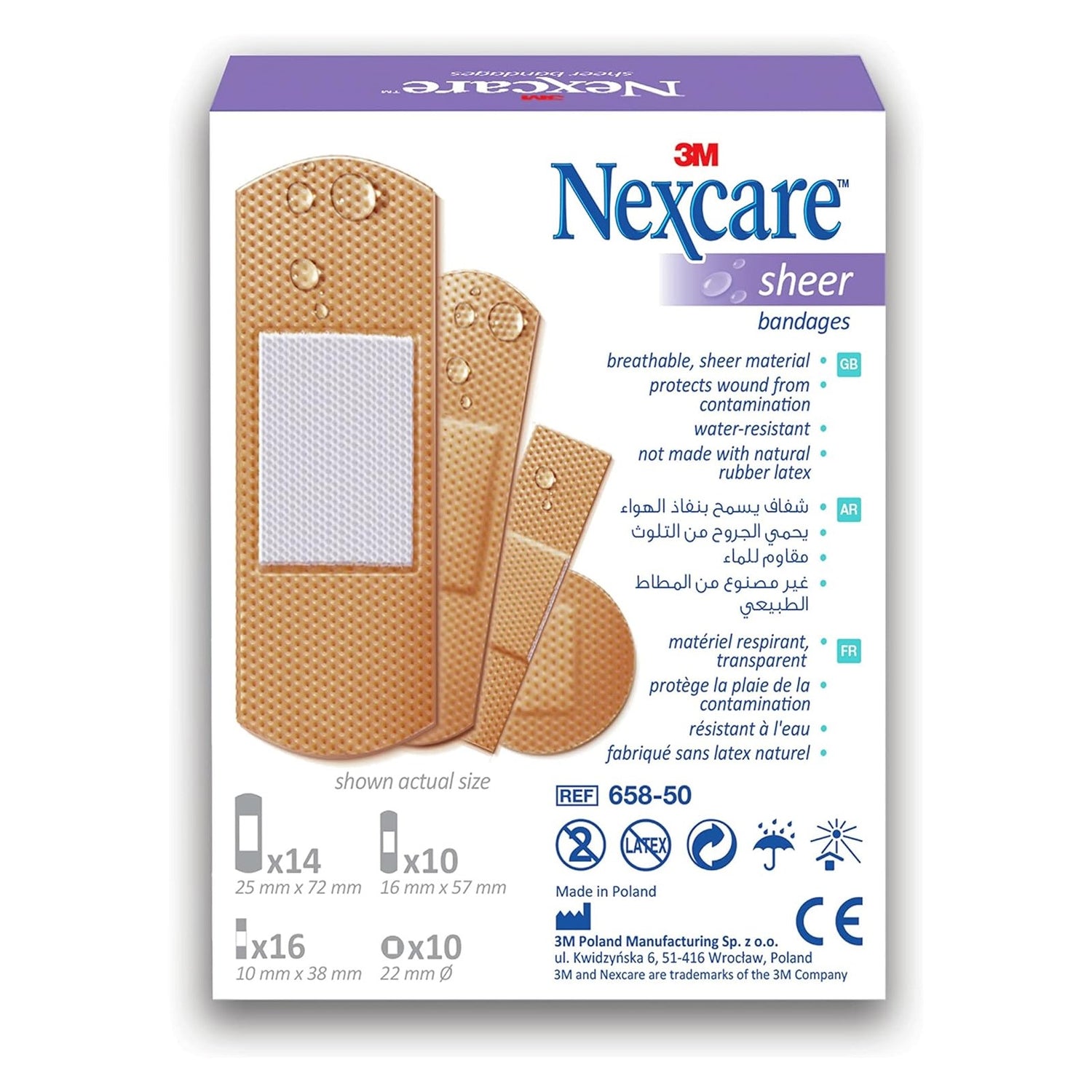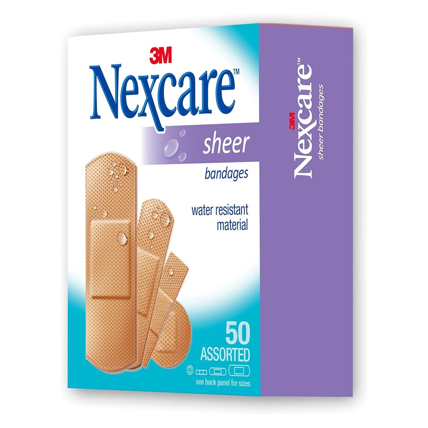 658-50 Nexcare Sheer Bandages, Assorted, 50/Box - PURPLE is backordered and will ship as soon as it is back in stock.