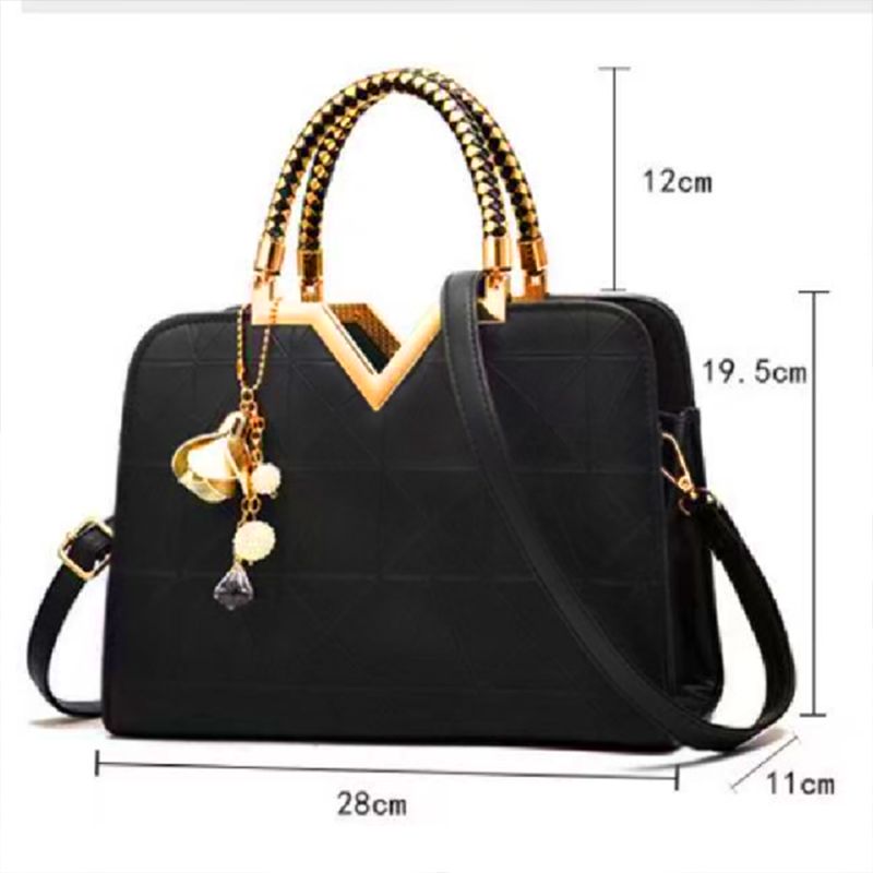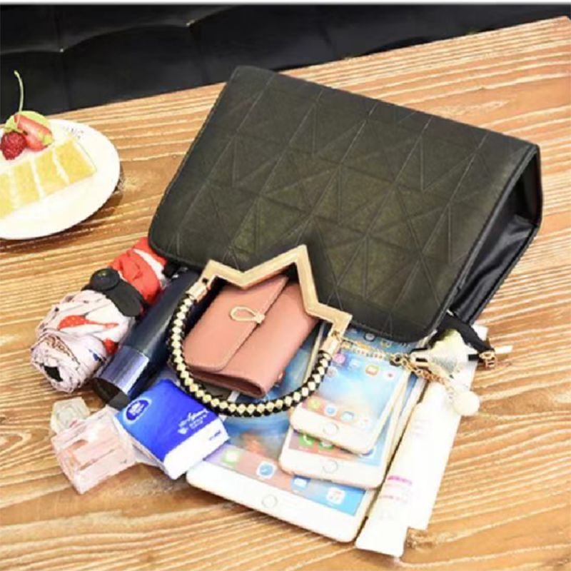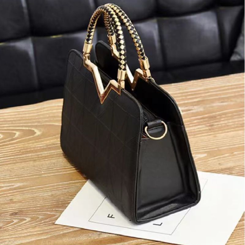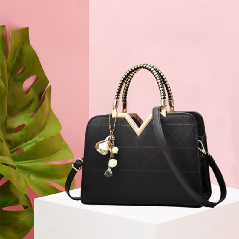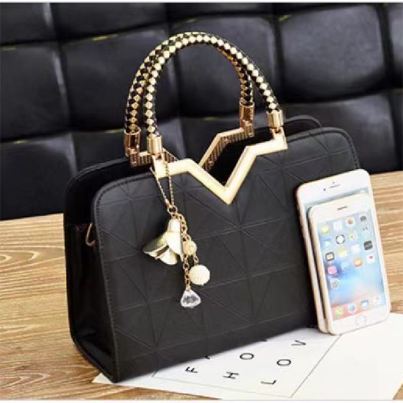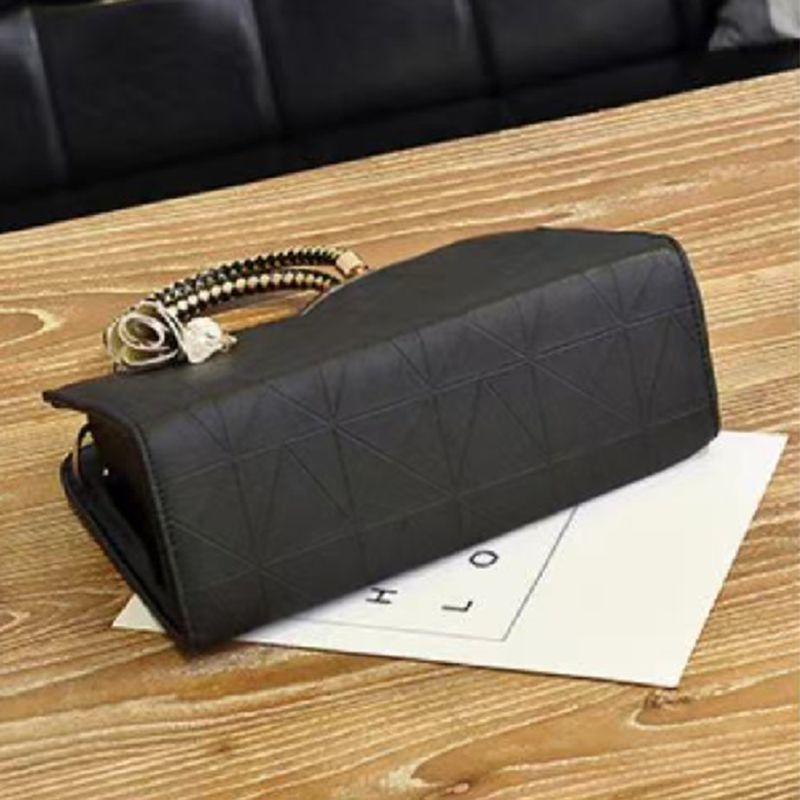 Black Geometric Stylish Handbag Trendy Versatile Office Fashion Charm .