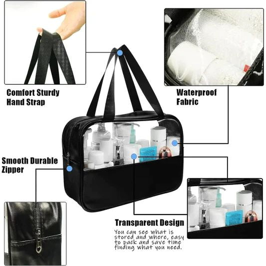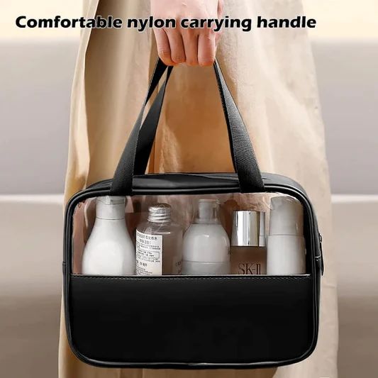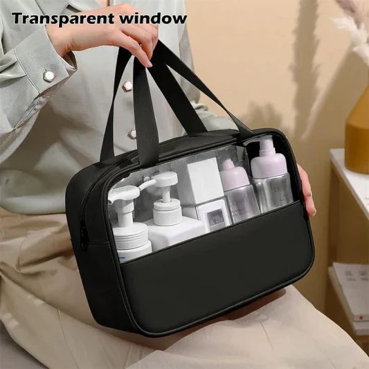 Black Leather Travel Bag: Stylish Organizer for Cosmetics, Accessories, Toiletries