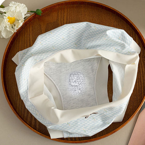 Bow Patched Cotton Hipsters Trendy Women\'s Underwear Collection with Soft Fabric & Elastic Waist - Blue Multi