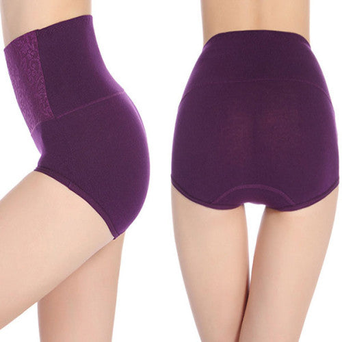 Floral Embossed Print High Elastic Waist Underwear Women Summer Wear Inner Soft Comfy Fabric Women's Panty - Purple