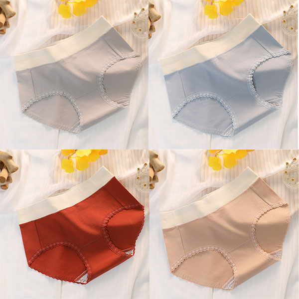 Floral Lace High Waist Briefs Stylish Soft Fabric Women's Underwear - Skin