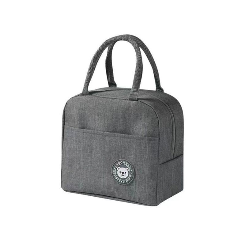 - Stylish lunch bag in versatile gray Oxford cloth.