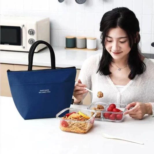 Insulated Oxford Lunch Bag: Double Handle, Lightweight, Letters Print