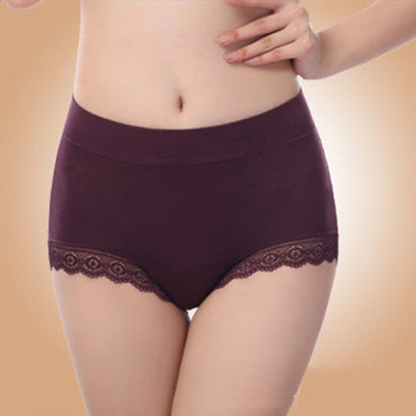 Lace Patched Dark Brown Hipster Underwear for Women Thin Fabric Breathable Elastic Closure Cotton Blend Normal Fit