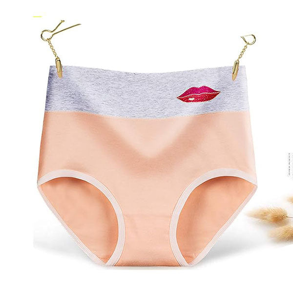 Orange Lips Mesh Hipster Underwear Comfy Women\'s Inner Wear Panty with Wide Elastic Waist and Cotton Blend Fabric
