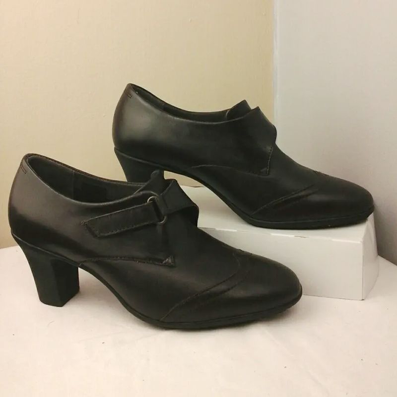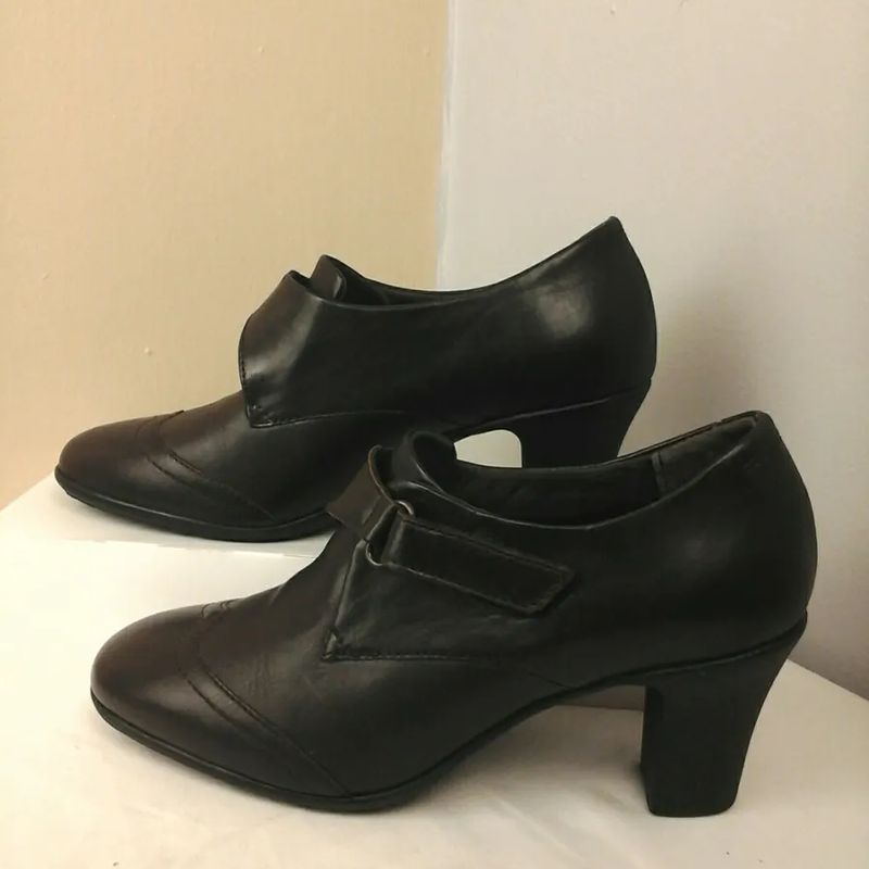 Scholl Memory Cushion Dark Brown Leather Shoes , Touch Fasten, Kelley Design.