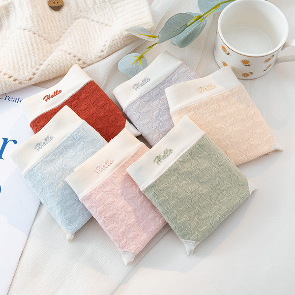 Stylish Ribbed High Waist Hipsters Two Tone Women's Panties Cotton Blend Fabric Underwear - Skin