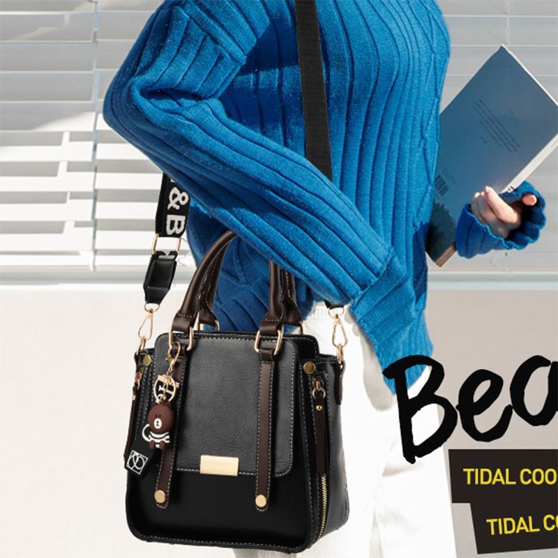 Premium Quality Trendy Black PU Stylish Handbag With Spacious Versatile Chic .