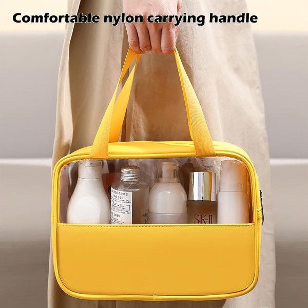 Yellow Zipper Travel Bag: Double Handle, Synthetic Leather, Stylish Organizer - Yellow is backordered and will ship as soon as it is back in stock.