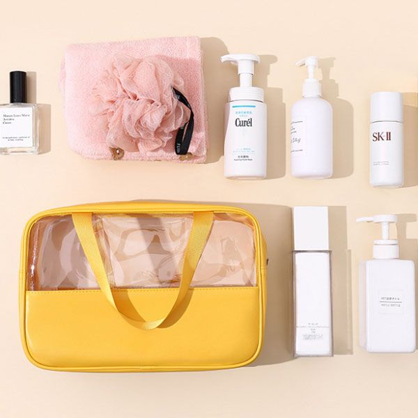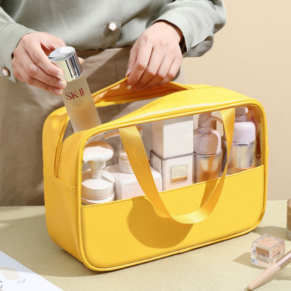 Yellow Zipper Travel Bag: Double Handle, Synthetic Leather, Stylish Organizer