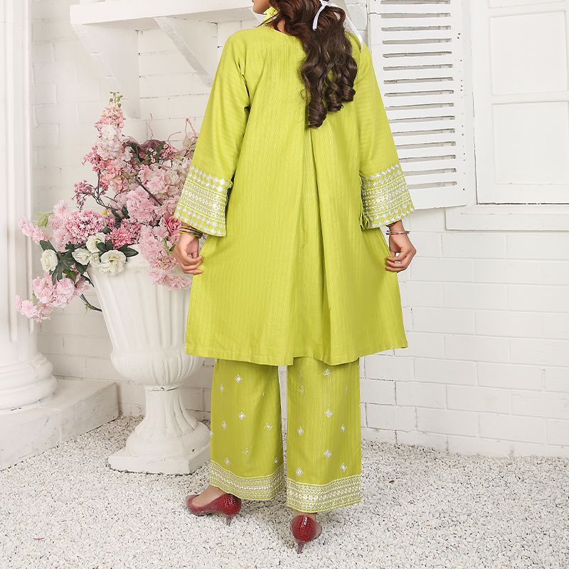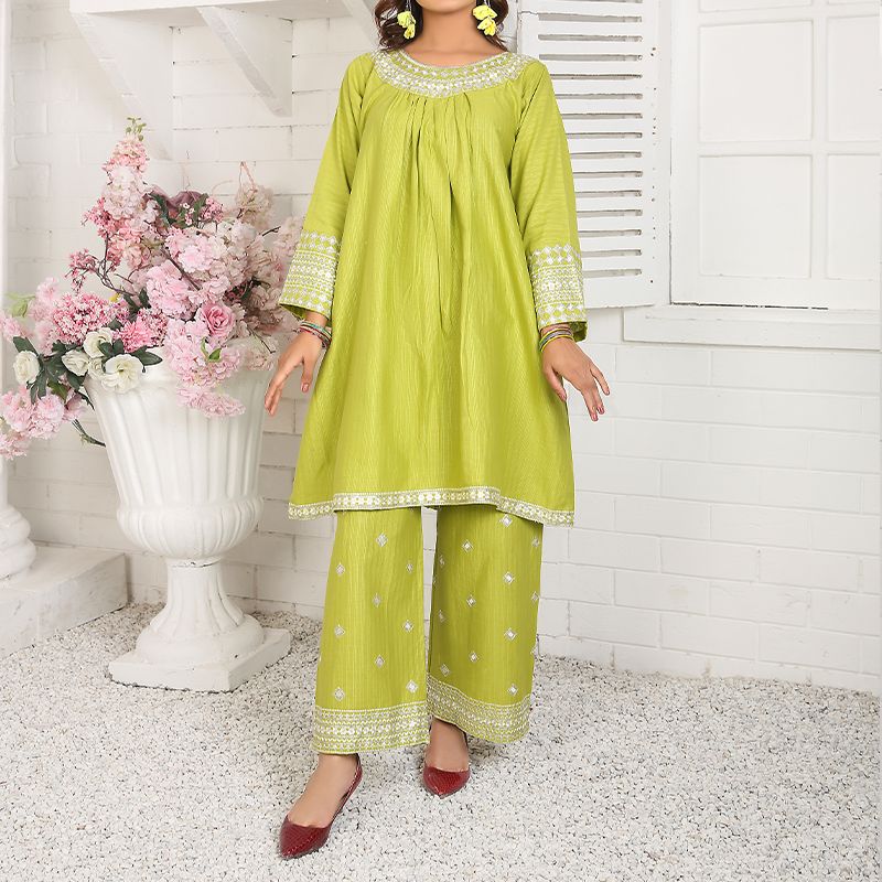 2 Piece Kurti Salwar Embroidery Set - Pure Cotton Collection Stylish Solid Color Light Weight Cotton Fabric Suit Top Bottom Salwar Kameez Embroidered Suit For Event Party Outdoor Dress - Green