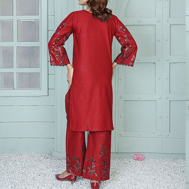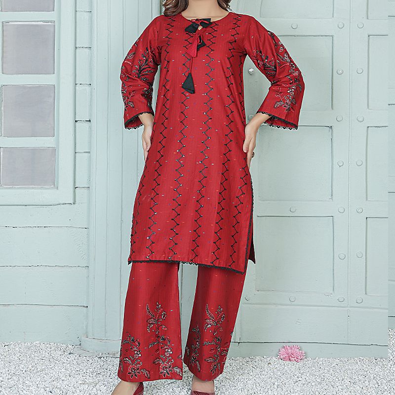 2 Piece Kurti Salwar Embroidery Set - Pure Cotton Collection Stylish Solid Color Light Weight Cotton Fabric Suit Top Bottom Salwar Kameez Embroidered Suit For Event Party Outdoor Dress - Maroon