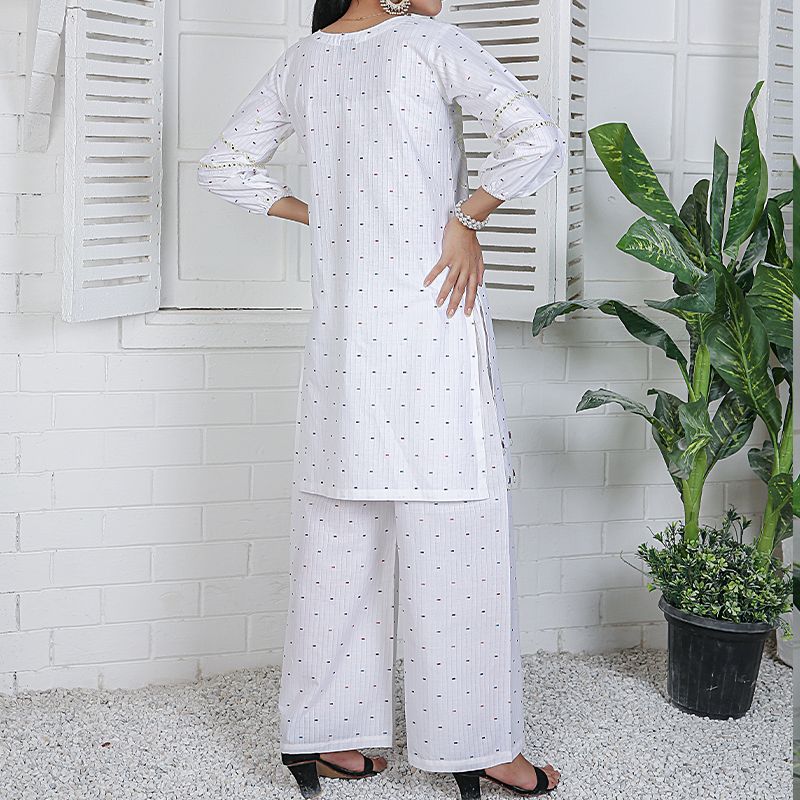 2 Piece Kurti Salwar Embroidery Set - Pure Cotton Collection Stylish Solid Color Light Weight Cotton Fabric Suit Top Bottom Salwar Kameez Embroidered Suit For Event Party Outdoor Dress - White